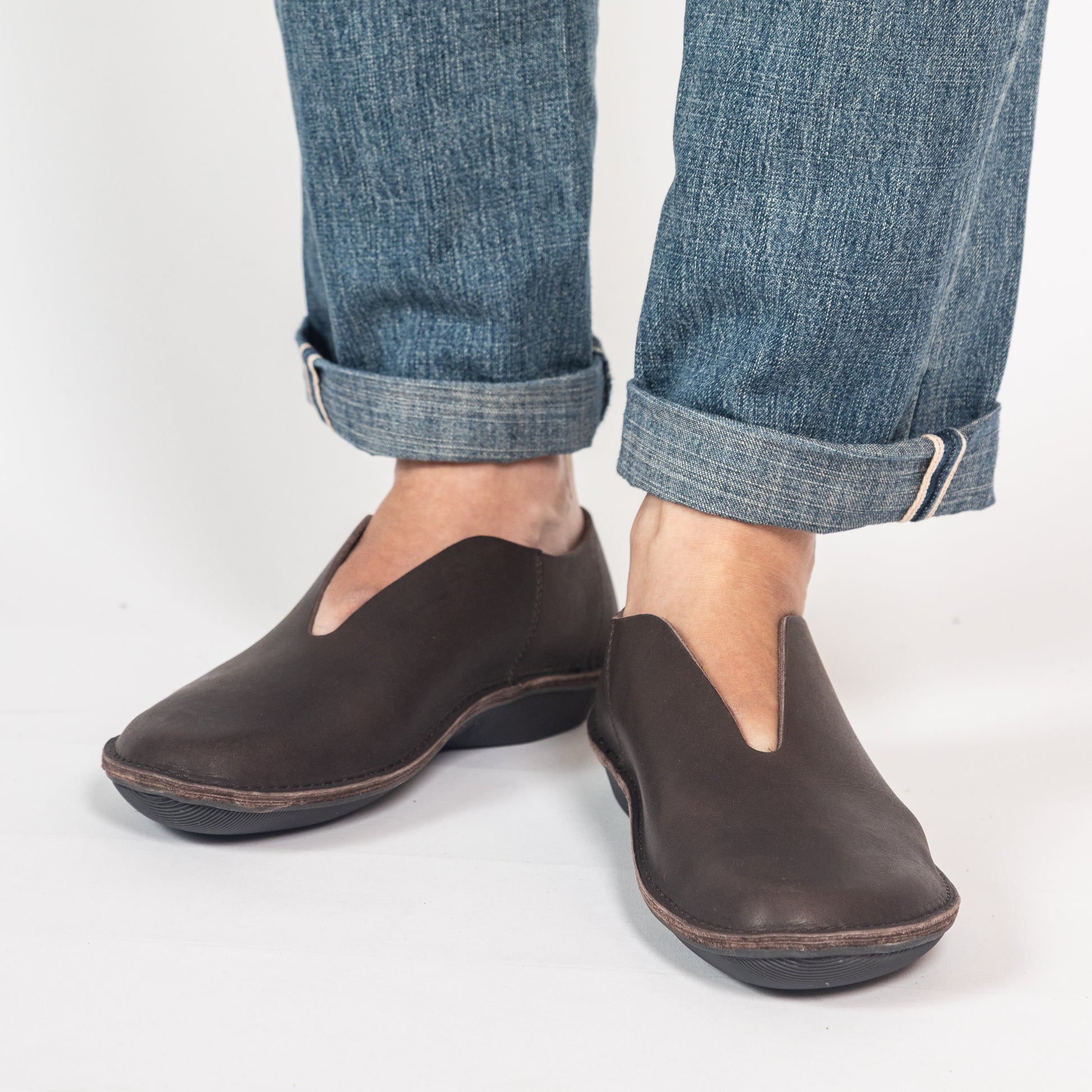 足全体を優しく包み込む履き心地を実現する縫製方法で、靴全体が丸みを帯びているのが "TURBO" シリーズの特徴です。TURBO のソールは、素足感覚で歩ける軽快な歩行をサポートします。
